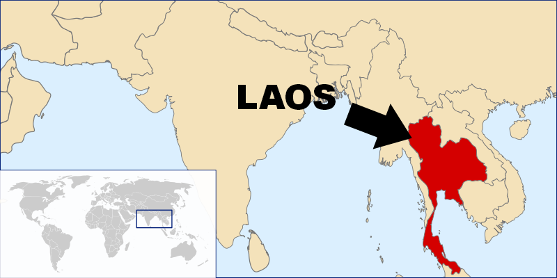 Laos es un estado sin litoral en el sudeste de Asia y el paisaje, densamente arbolado, consiste, sobre todo, en montañas rugosas, la más alta de las cuales es Phu Bia con 2.820 metros de altitud, con algunas llanuras y mesetas.